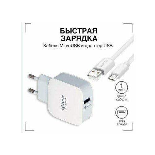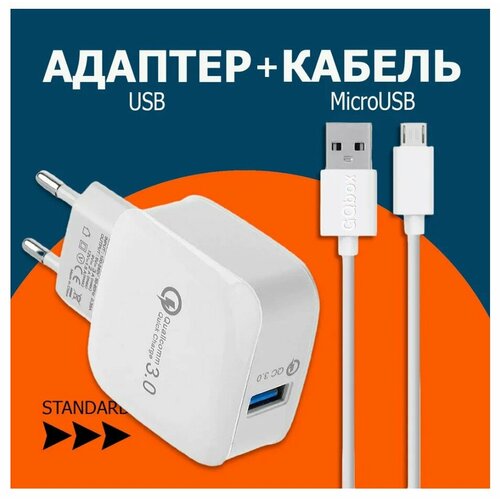 Зарядка для телефона / GQbox / Комплект / Кабель MicroUSB Standart + блок питания для телефона. QC3. LZ-008. Standart. Белый / Для Android