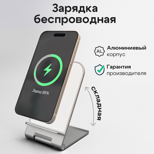 Беспроводное зарядное устройство / Зapядка / Подставка / Док станция для iPhone / Быстрая зарядка / Белый