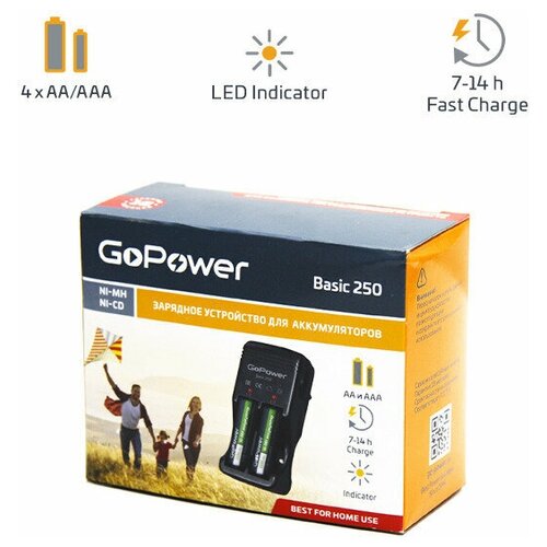 Зарядное устройство для аккумуляторных батареек AA и AAA GoPower Basic 250 Ni-MH/Ni-Cd 4 слота