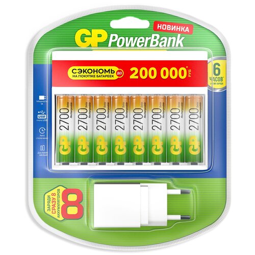 Аккумулятор + зарядное устройство GP PowerBank 270AAHC/CPBXL-2CR8 AA NiMH 2700mAh (8шт) блистер