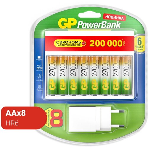 Зарядное устройство GP + аккумулятор АА (HR6) 2700 ser, 8 шт