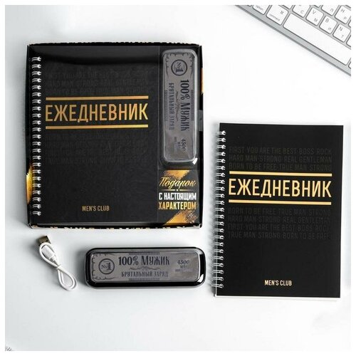 Like me Набор ежедневник и внешний аккумулятор «100% мужик», 4500 mAh