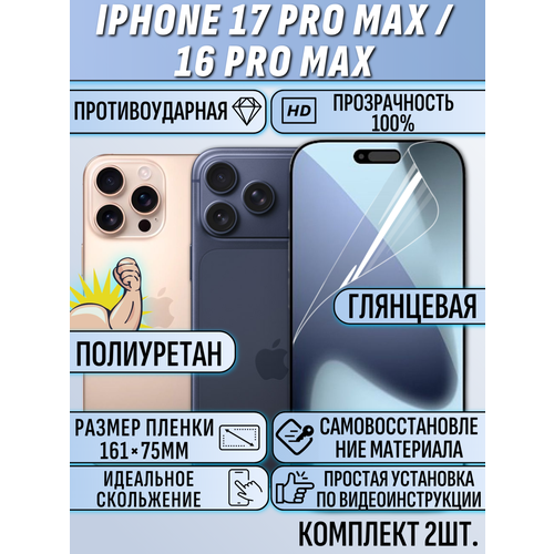 Гидрогелевая пленка для IPhone 16 pro max / 17 pro max глянцевая на весь экран 2 шт