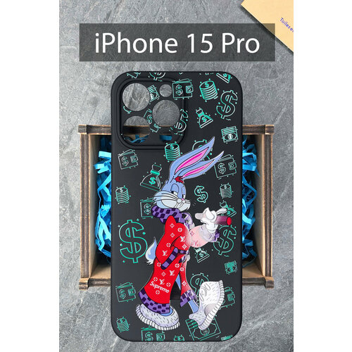 Силиконовый защитный матовый чехол на iPhone 15 Pro с принтом Заяц