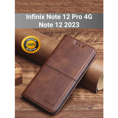 Чехол книжка для Infinix Note 12 Pro 4G и Note 12 2023 elitcase (Тёмно-коричневая)