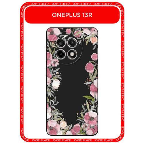 Черный матовый чехол на Oneplus 13R/Ace 5/5 Pro / Ван Плас 13R/Асе 5/5 Про с принтом Крокус