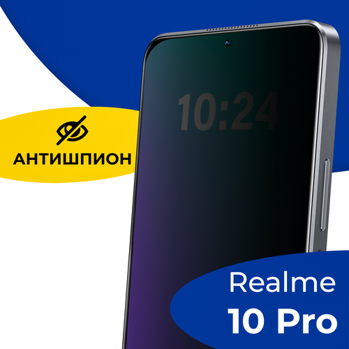 Защитное стекло Антишпион для Realme 10 Pro / Противоударное стекло 5D на Реалми 10 Про / Черное