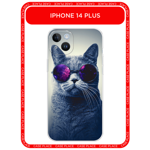Чехол на Apple iPhone 14 / Айфон 14 с принтом Кот в очках, прозрачный