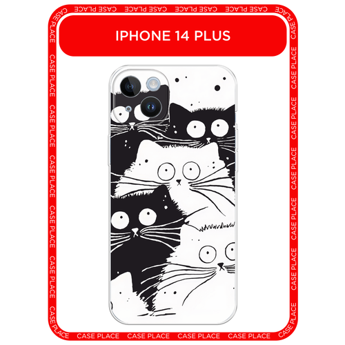 Чехол на Apple iPhone 14 Plus / Айфон 14 Плюс с принтом Коты черно-белые
