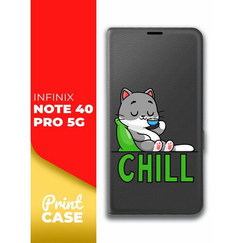 Чехол на Infinix Note 40 Pro 5G (Инфиникс Ноте 40 Про 5г) книжка эко-кожа подставка отделение для карт Book case, Miuko (принт) Котик Chill