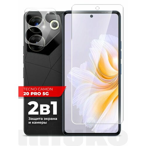 Защитное стекло для Tecno Camon 20 Pro 5G (Техно Камон 20 про 5Г) на Экран и Камеру, (гибридное: пленка+стекловолокно), прозрачное силиконовая клеевая основа тонкое Hybrid Glass, Miuko