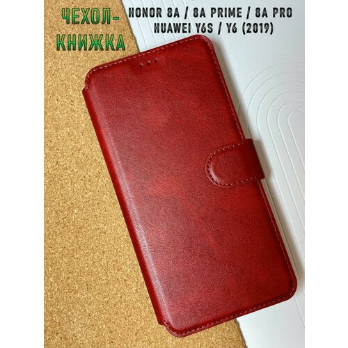 Чехол книжка для Honor 8A, Honor 8A Prime, Honor 8A Pro, Huawei Y6 (2019), Huawei Y6S кожаный с магнитной застежкой с хлястиком , с функцией подставки