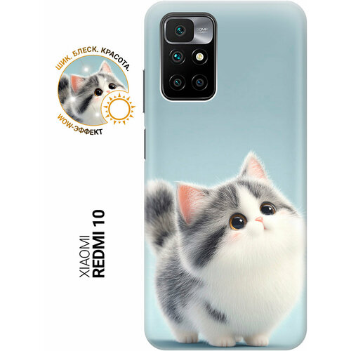 Силиконовый чехол на Xiaomi Redmi 10 с принтом "Нежный взгляд серого пушистика"