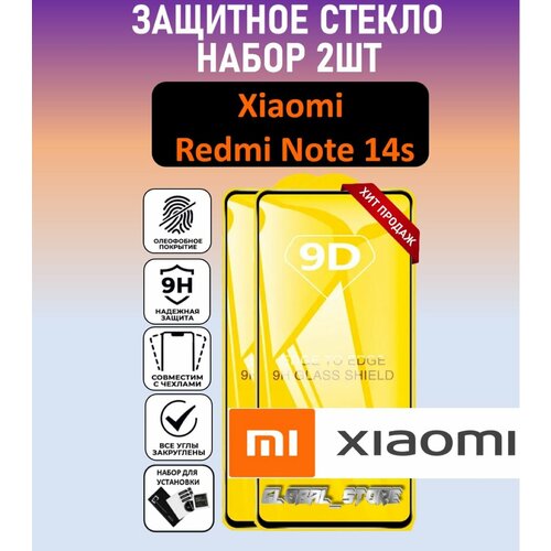 Комплект 2 в 1: Защитное стекло для Xiaomi Redmi Note 14S ( 2 шт ) Ксяоми Редми Нотэ 14с стекло с рамкой Full Glue