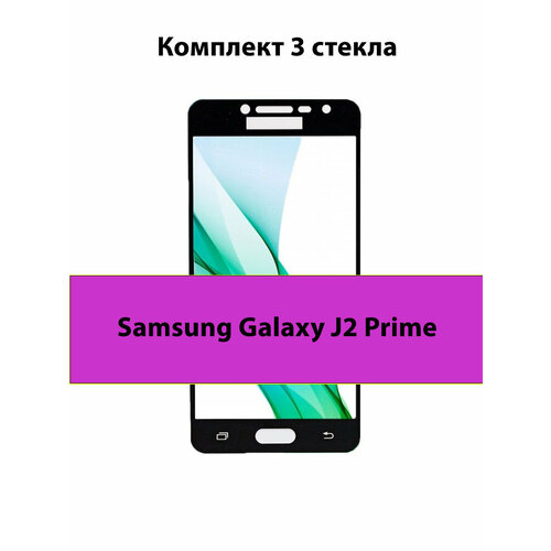 Комплект 3шт. Защитные стекла 3D Tempered Glass для Samsung Galaxy J2 Prime полный клей ( черная рамка )