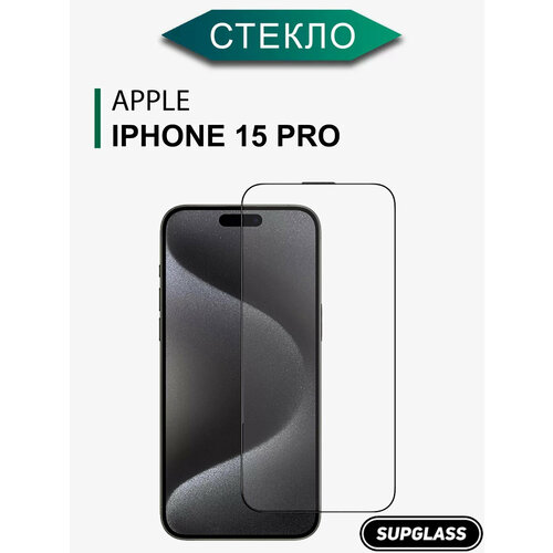 Защитное стекло для iPhone 15 Pro на весь экран / Стекло на Айфон 15 Про высокой прочности серия SUPGLASS