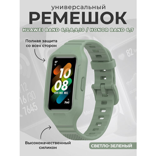 Универсальный силиконовый ремешок для Huawei Band 6,7,8,9 / Honor Band 6,7, светло-зеленый