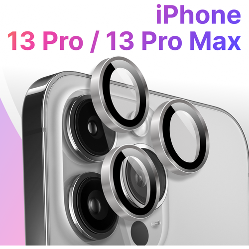 Комплект защитных стекол для камеры телефона Apple iPhone 13 Pro и 13 Pro Max / Линзы на камеру Эпл Айфон 13 Про и 13 Про Макс / Серебро