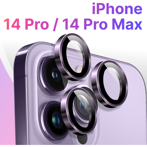Комплект защитных стекол для камеры телефона Apple iPhone 14 Pro и 14 Pro Max / Линзы на камеру Эпл Айфон 14 Про и 14 Про Макс / Темно-фиолетовый