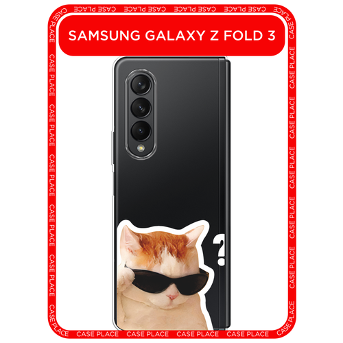 Чехол на Samsung Galaxy Z Fold 3 / Самсунг Галакси Зет Фолд 3 с принтом Кот в очках, прозрачный