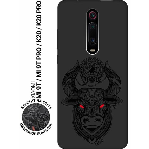 Матовый Soft Touch силиконовый чехол на Xiaomi Mi 9T, Mi 9T Pro, K20, K20 Pro, Сяоми Ми 9Т, Ми 9Т Про с 3D принтом "Grand Bull" черный
