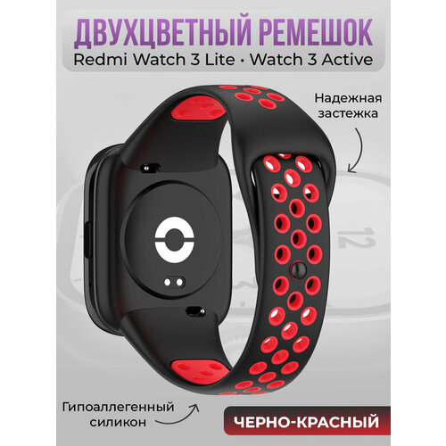 Двухцветный силиконовый ремешок для Redmi Watch 3 Lite, Watch 3 Active, черно-красный