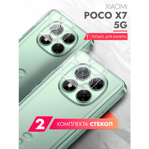 Защитное стекло на Камеру для Xiaomi POCO X7 5G , 2 штуки, (гибридное: пленка+стекловолокно), прозрачное силиконовая клеевая основа тонкое Hybrid Glass, Brozo