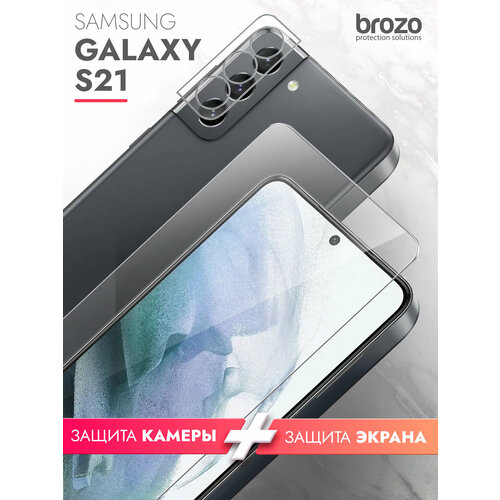 Защитное стекло на Samsung Galaxy S21 ( Самсунг Галакси С21 ), (гибридное: пленка + стекловолокно) на Экран и Камеру прозрачное силиконовая клеевая основа полноклеевое тонкое Hybrid Glass, Brozo