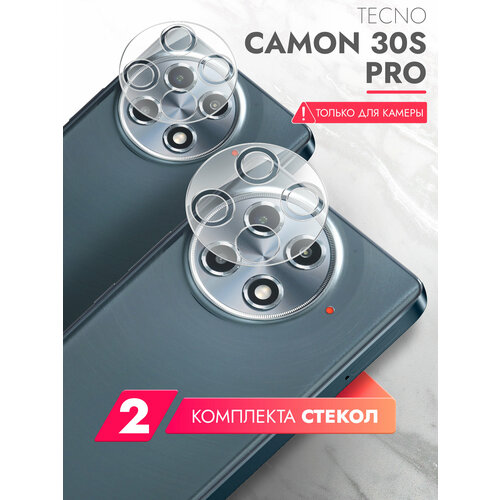 Защитное стекло на Камеру для Tecno Camon 30s Pro (Техно Камон 30с Про) , 2 штуки, (гибридное: пленка+стекловолокно), прозрачное силиконовая клеевая основа тонкое Hybrid Glass, Brozo