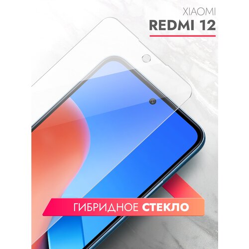 Защитное стекло для Xiaomi Redmi 12 (Ксиоми Редми 12) на Экран, (гибридное: пленка+стекловолокно), прозрачное тонкое Hybrid Glass, Brozo