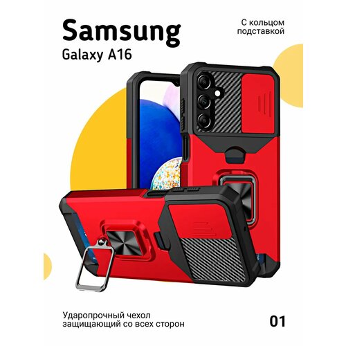 Чехол О'кейси, для Samsung Galaxy A16, силикон, кольцо-держатель, красный/черный