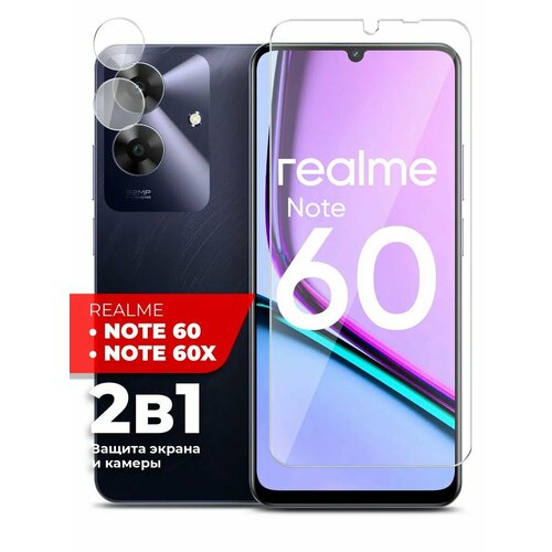 Защитное стекло для Realme Note 60/ Realme Note 60X на Экран и Камеру, (гибридное: пленка+стекловолокно), прозрачное силиконовая клеевая основа тонкое Hybrid Glass, Miuko