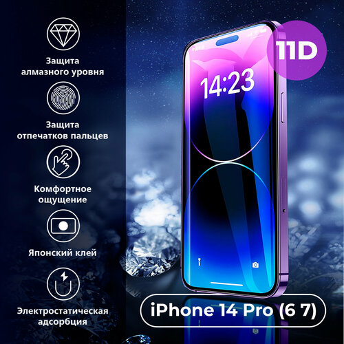 Стекло AMFOX для Apple iPhone 14 Pro, на полный экран, с черной рамкой, олеофобное покрытие, защитная пленка на айфон 14 про, защитка на телефон