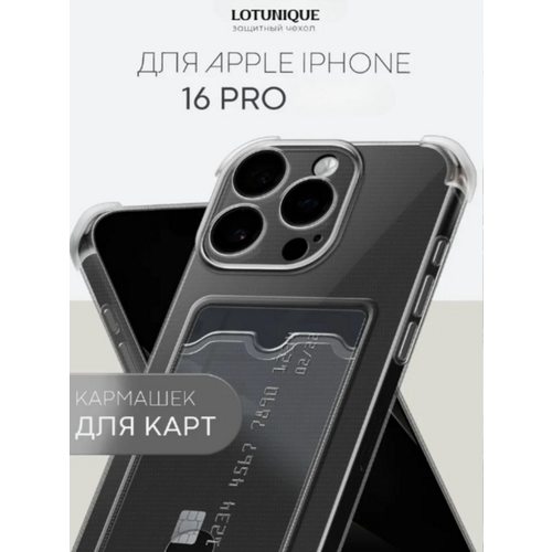 Чехол на Айфон 16 Про, iPhone 16 Pro, прозрачный, с кармашком для карт