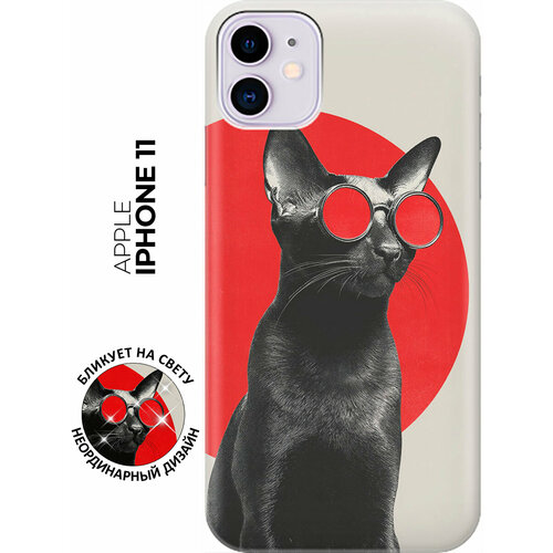 Силиконовый чехол на Apple iPhone 11 с принтом "Кот-интрига на красном фоне"