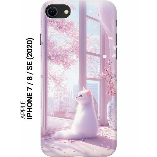 Силиконовый чехол на Apple iPhone SE (2022) / SE (2020) / 8 / 7 с принтом "Белый котик и сакура"