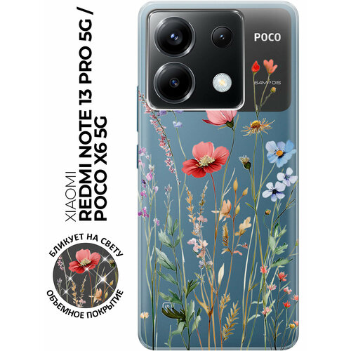 Силиконовый чехол на Xiaomi Redmi Note 13 Pro 5G / Poco X6 5G с принтом "Милые цветочки" прозрачный