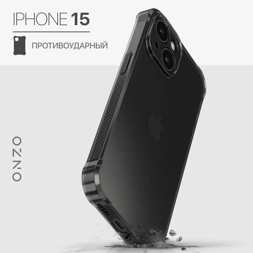 Противоударный чехол для iPhone 15 / Бампер на Айфон 15 с рельефными гранями, темно-прозрачный