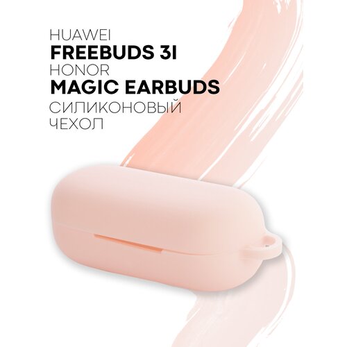 Силиконовый чехол с карабином для беспроводных наушников Huawei Freebuds 3i и Honor Magic Earbuds, розовый