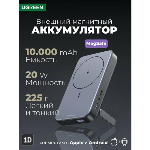 Внешний магнитный аккумулятор UGREEN PB 206 (15086), 10000 мАч, 20W, Space Gray MagSafe