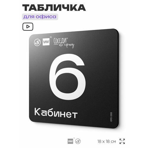 Табличка информационная "Кабинет №6" 18х18 см, пластиковая, SilverPlane x Айдентика Технолоджи