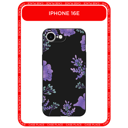 Черный матовый чехол на Apple iPhone 16e / Айфон 16е с принтом Сиреневая цветочная рамка
