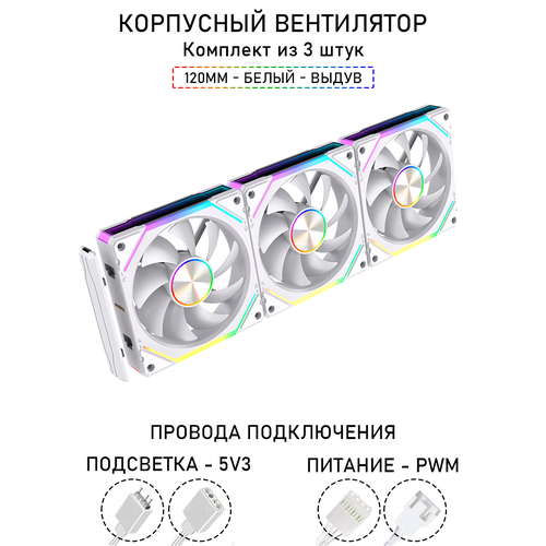 Модульный вентилятор - 5RS Inline - 120мм, A-RGB, PWM+5v3, Комплект из 3 штук, на выдув из корпуса