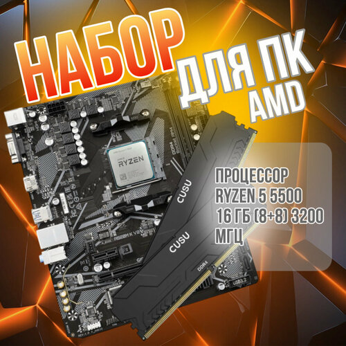 Комплект материнская плата + процессор AMD + ОЗУ. A520, Ryzen 5 5500. 16 гб (8+8) 3200 МГц