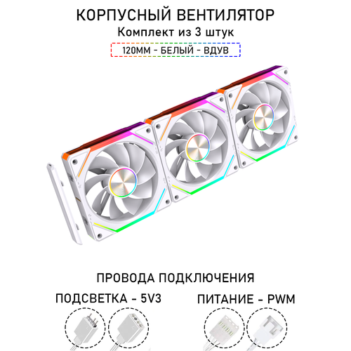 Модульный вентилятор - 5RS Inline - 120мм, A-RGB, PWM+5v3, Комплект из 3 штук, на вдув в корпус
