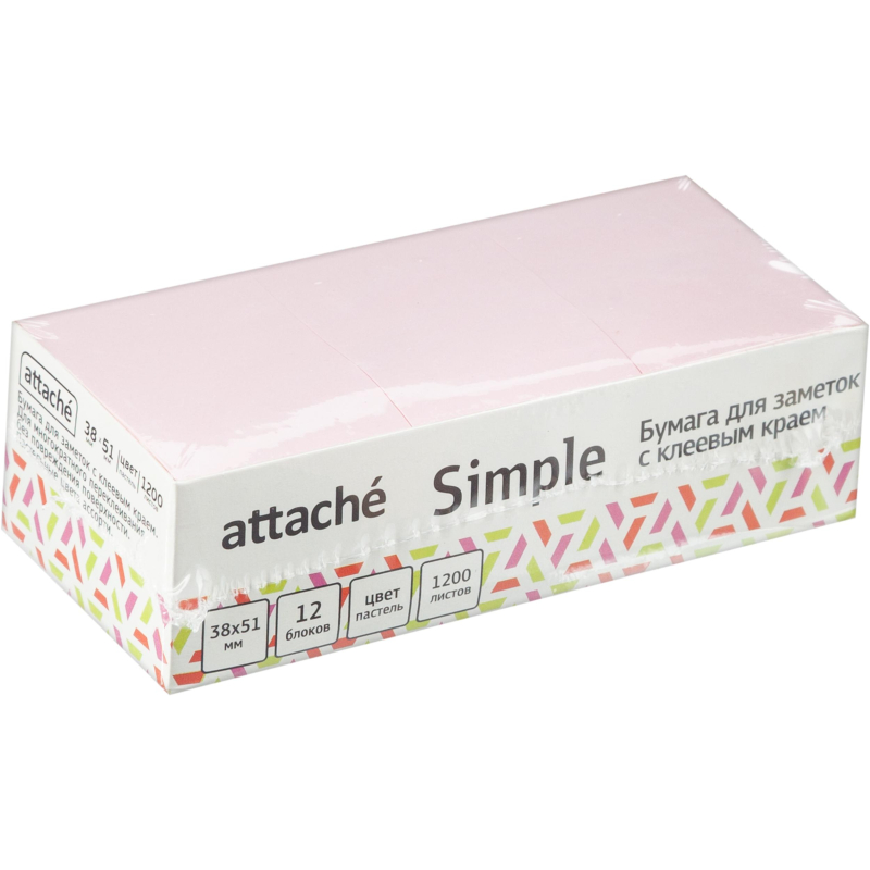 Стикеры Attache Simple с клеев.краем 38х51 пастел.цвета 12 блок/уп(1635536) 100058553932