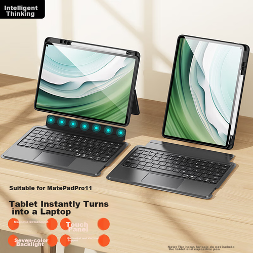 Zhisihui Keyboard Case for Huawei MatePad Pro 11-Inch, Compatible with 2024/2022 Models, Touchscreen Backlit Bluetooth Keyboard, Magnetic Detachable Silicone Case, Black