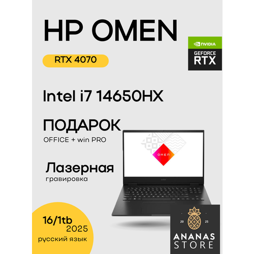 Ноутбук HP Omen 10, 16.1"/240Hz/ Intel Core i7-14650HX/RAM 16Gb/1Tb/RTX 4070 8Gb/Windows 11 Home/Русская клавиатура