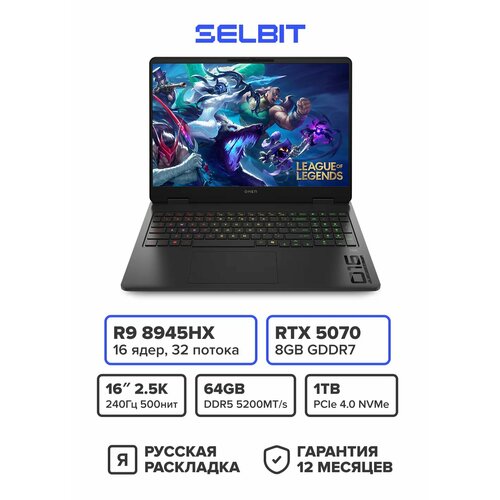 Игровой ноутбук HP OMEN 16 2025, Ryzen 9 8945HX, RTX 5070, RAM 64ГБ, SSD 1ТБ, 16-ap0083AX, Русская раскладка, Черный