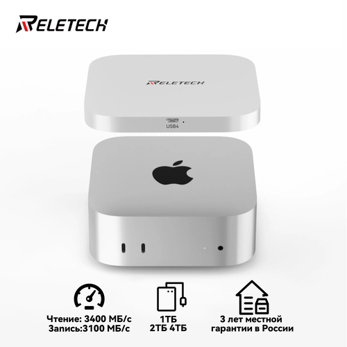 2 ТБ Внешний портативный SSD для M4 Mac Mini, интерфейс USB4 с пропускной способностью 40Gbps, скорость передачи данных до 3400 МБ/с, высокоскоростная передача данных для Mac Mini/ноутбука/ПК, Reletech Mini Pal